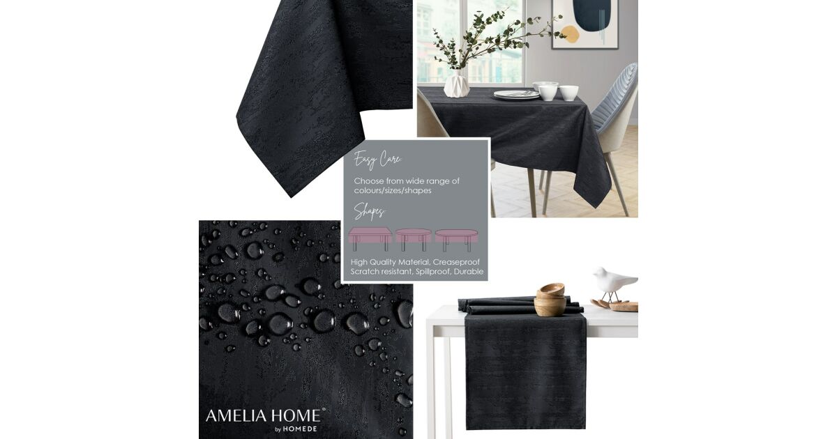 Față de masă AmeliaHome Vesta neagră, cu model în relief modern, 155x250 cm - Elegantă și practică ✨
