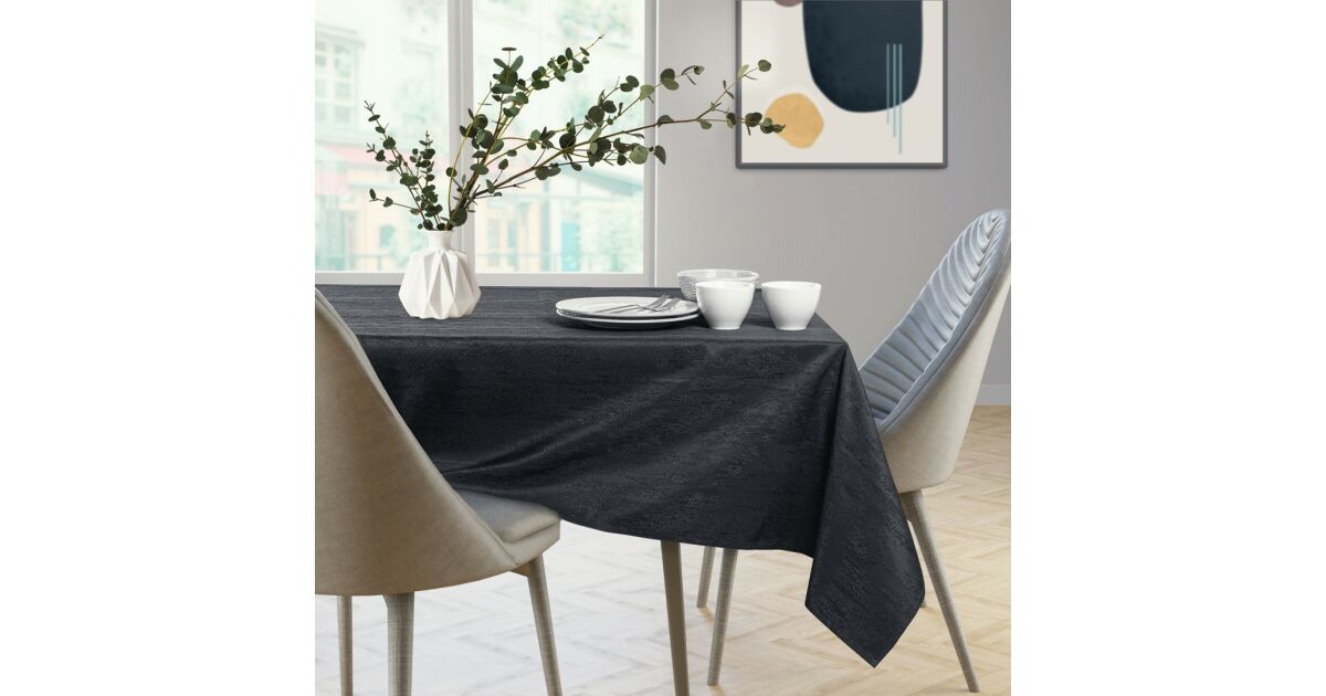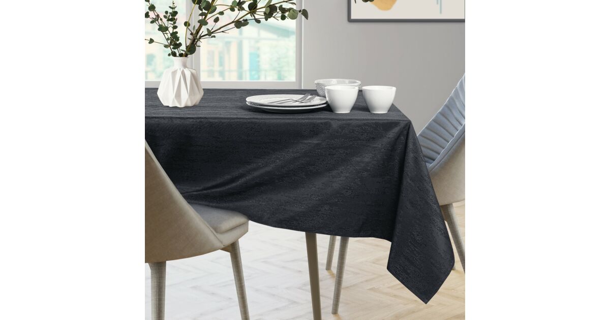 Transformă-ți sufrageria într-un loc festiv cu această față de masă neagră și elegantă, cu un model modern în relief, perfectă pentru orice ocazie!