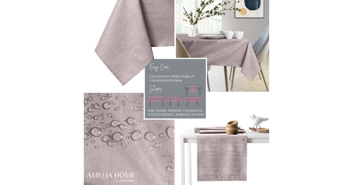 Față de masă Vesta roz pudră în relief modernă 140x260 owal AmeliaHome