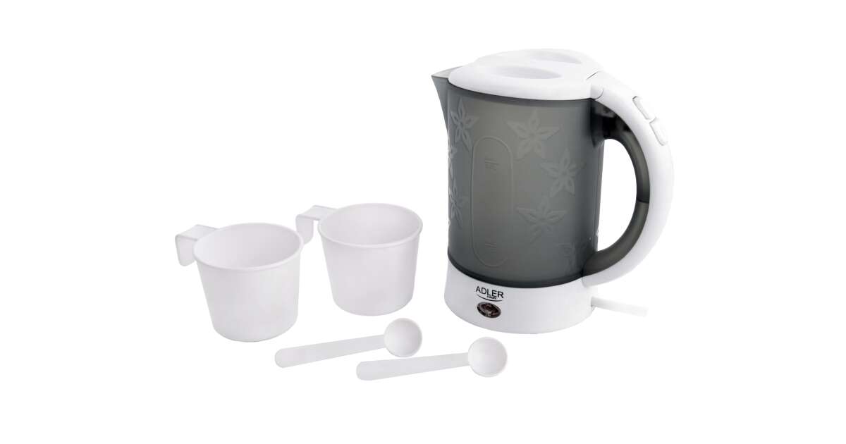 Fierbător electric pentru drumeții Adler AD 1268, 900W, 600 ml, 2 căni, Oprire automată, Alb/gri Descriere