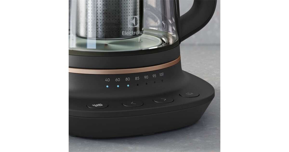 Fierbator Electrolux E7GK1-8BP, 2400W, set infuzor ceai inclus, sticla Schott, temperaturi predefinite 40-100 °C, Transparent (E7GK1-8BP) Descriere