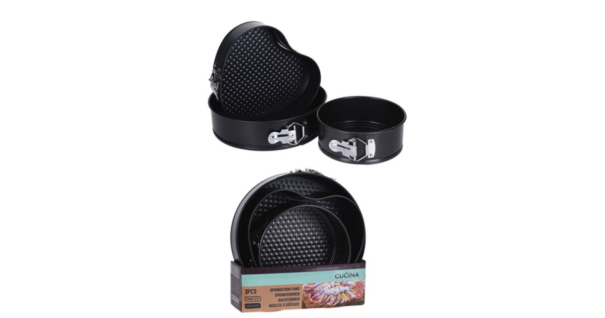 Set de 3 forme de tort antiaderente La Cucina pentru prăjituri, cu laterale detașabile, rotunde și în formă de inimă Descriere