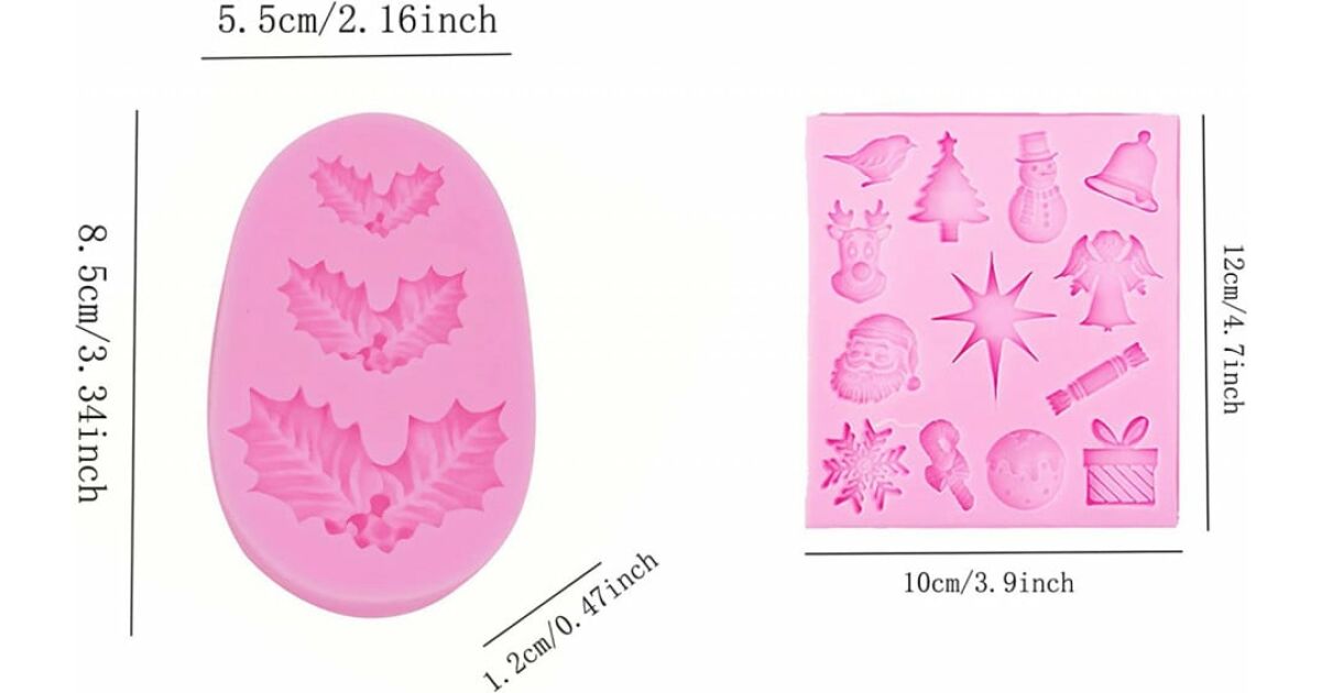 Acest set de 2 forme din silicon roz este alegerea perfectă dacă vrei să faci dulciuri, ciocolată sau chiar săpunuri cu tematică de Crăciun. Cu ajutorul formelor, poți crea cu ușurință decorațiuni unice pentru torturi, prăjituri și alte bunătăți.