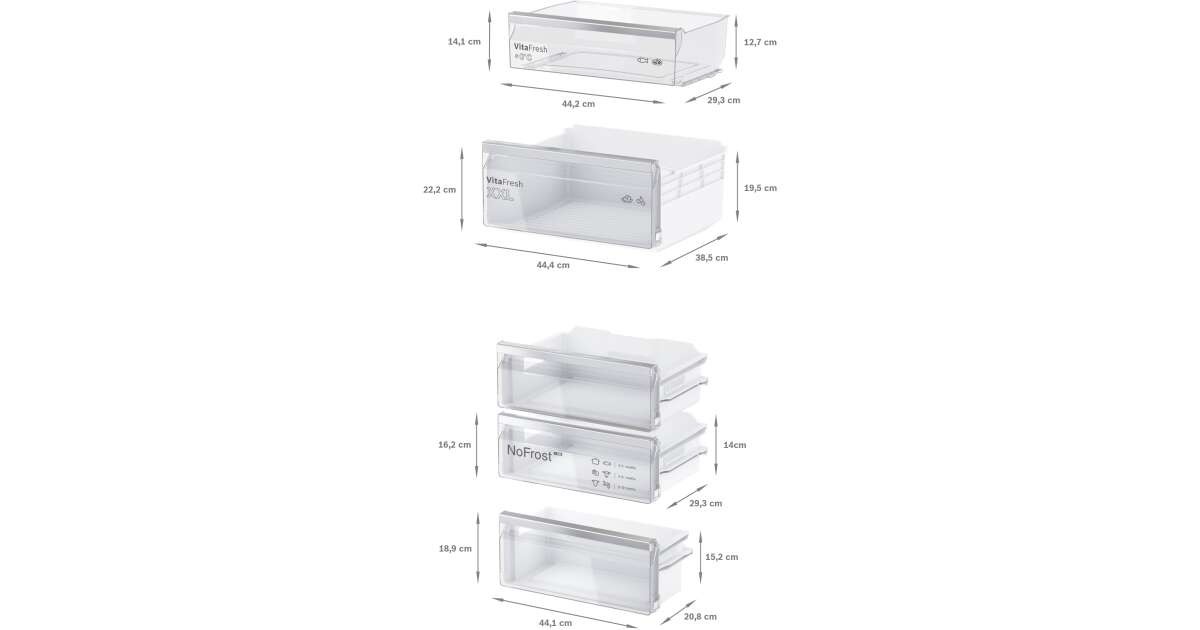 Хладилник, Bosch KIN86ADD0, SER6, BI fridge-freezer NoFrost, D, 177,2cm, 260l(184+76), 35dB(B), IC, VitaFresh XXL, 0° drawer, EcoAirflow, bottle shelf, 2 cooling systems, display, LED freezer Descriere