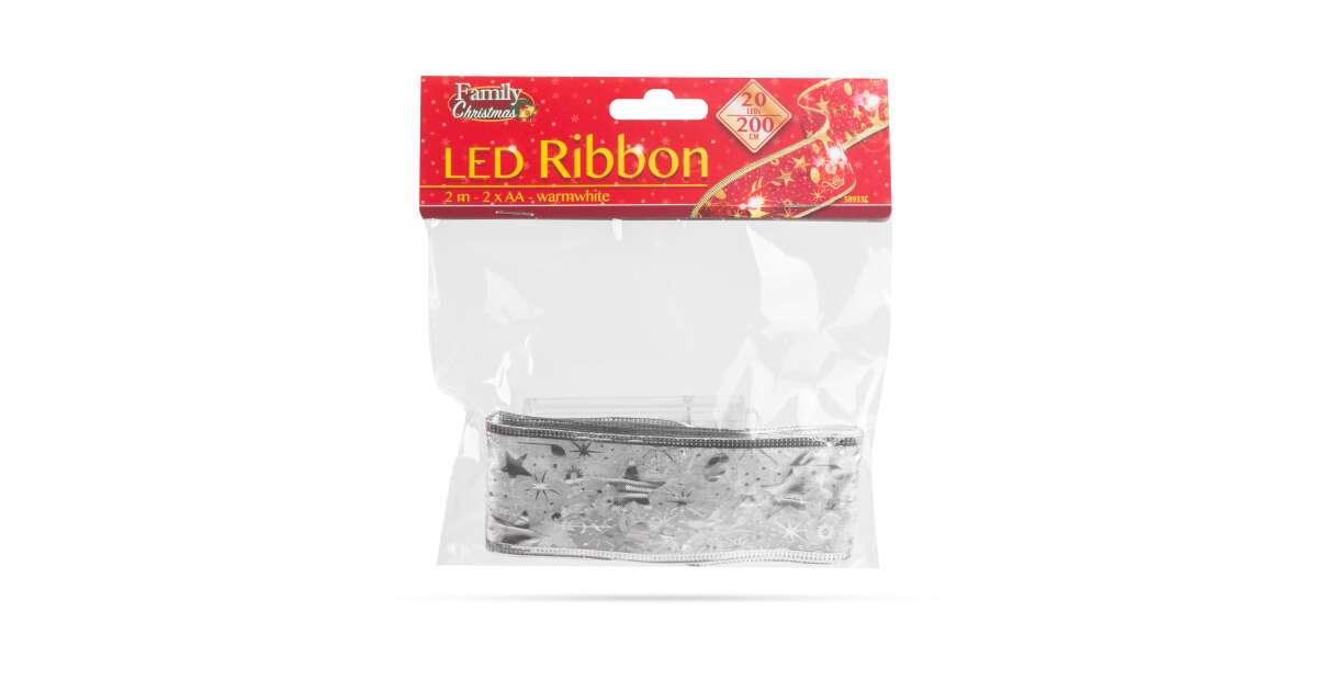 Bandă LED de Crăciun - Argintiu - 2 m x 5 cm - 2 x AA Descriere