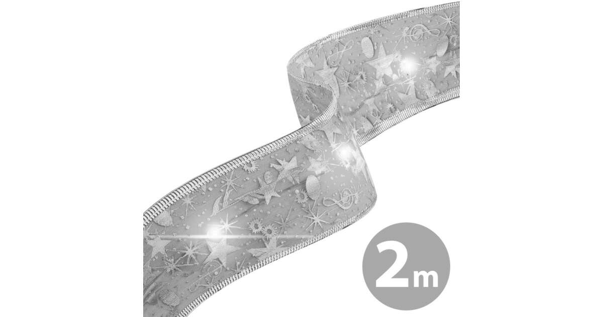 Cu această bandă din organza argintie de 2 metri lungime, poți crea o atmosferă magică de Crăciun în casa ta. Ghirlanda LED cu lumină caldă integrată în bandă emană o lumină blândă și plăcută, completând perfect decorațiunile de sărbătoare.