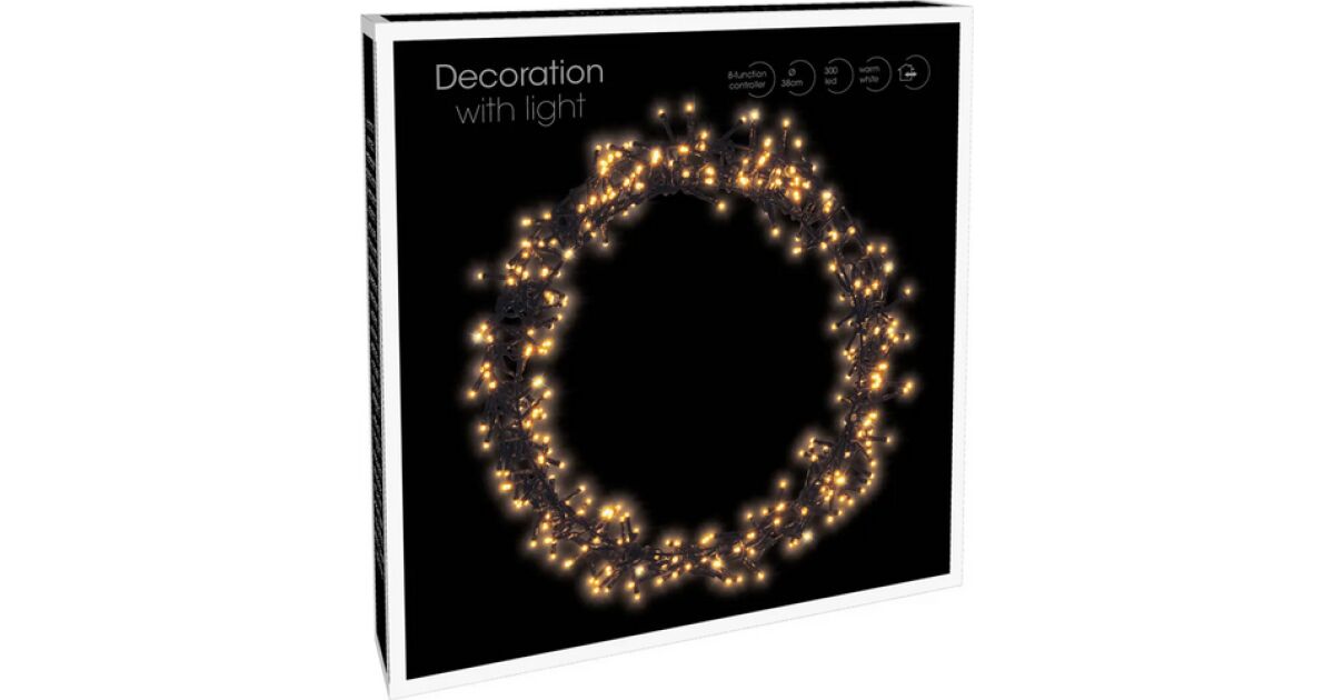 Decorațiune de ușă cu coroană LED de Crăciun-Advent cu 500 de culori alb cald, 58 cm, adaptor de rețea IP44, cu 8 tipuri de efecte luminoase Descriere