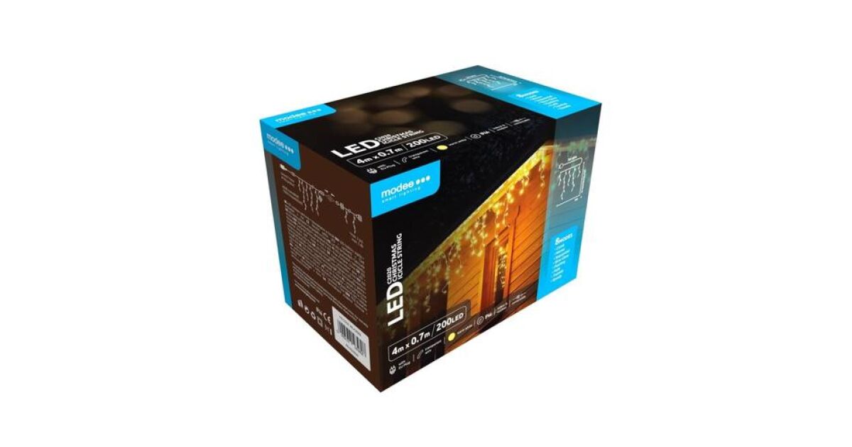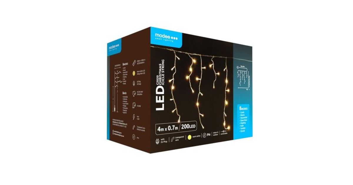 Ghirlandă luminoasă de Crăciun cu 200 LED-uri tip țurțuri, alb cald, extensibilă - 8 programe, cu adaptor Descriere