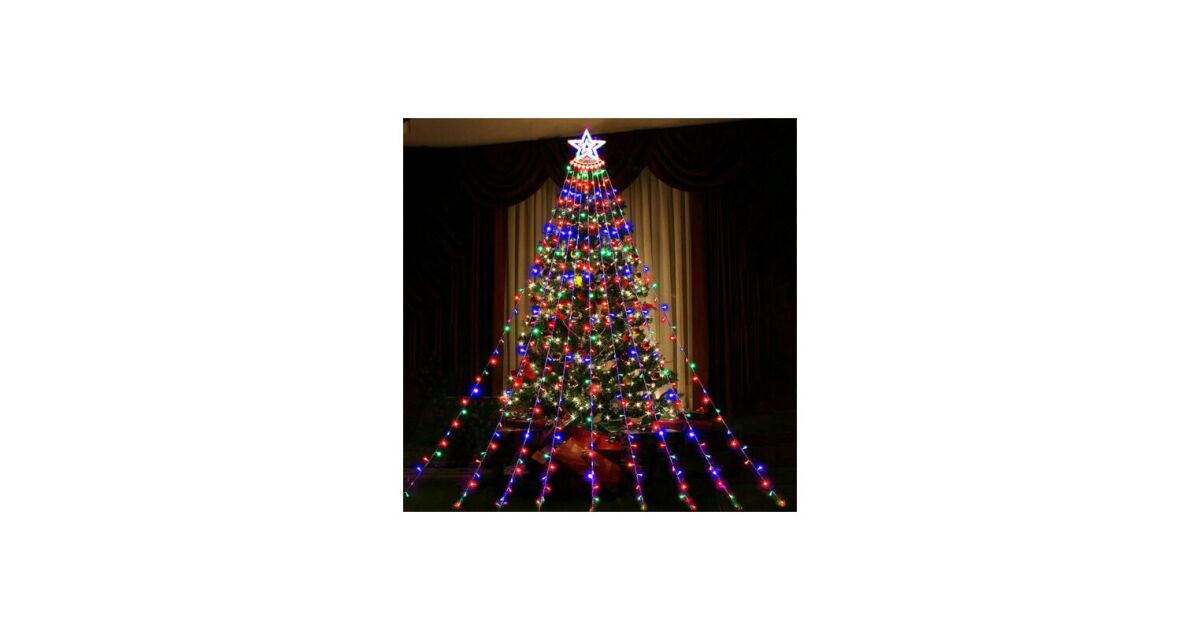Cu această ghirlandă luminoasă impresionantă de Crăciun, poți crea o atmosferă magică în casa ta. Cortina luminoasă, care pornește de la o stea de 30x30 cm și se ramifică în 9 fire, are o lungime de 270 cm și este echipată cu 360 de LED-uri colorate. Datorită designului tip cortină, creează efectul perfect de brad de Crăciun, chiar și atunci când este agățată singură.