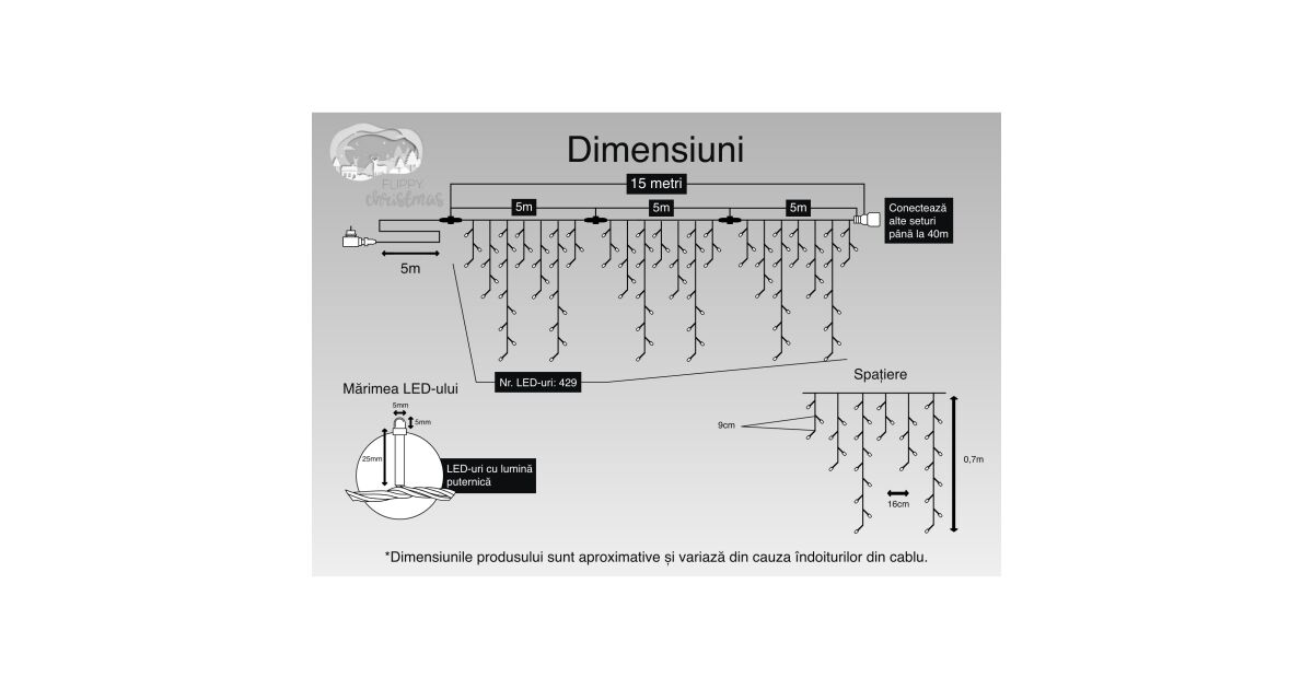 - Conectabil: Se pot conecta mai multe șiruri de lumini