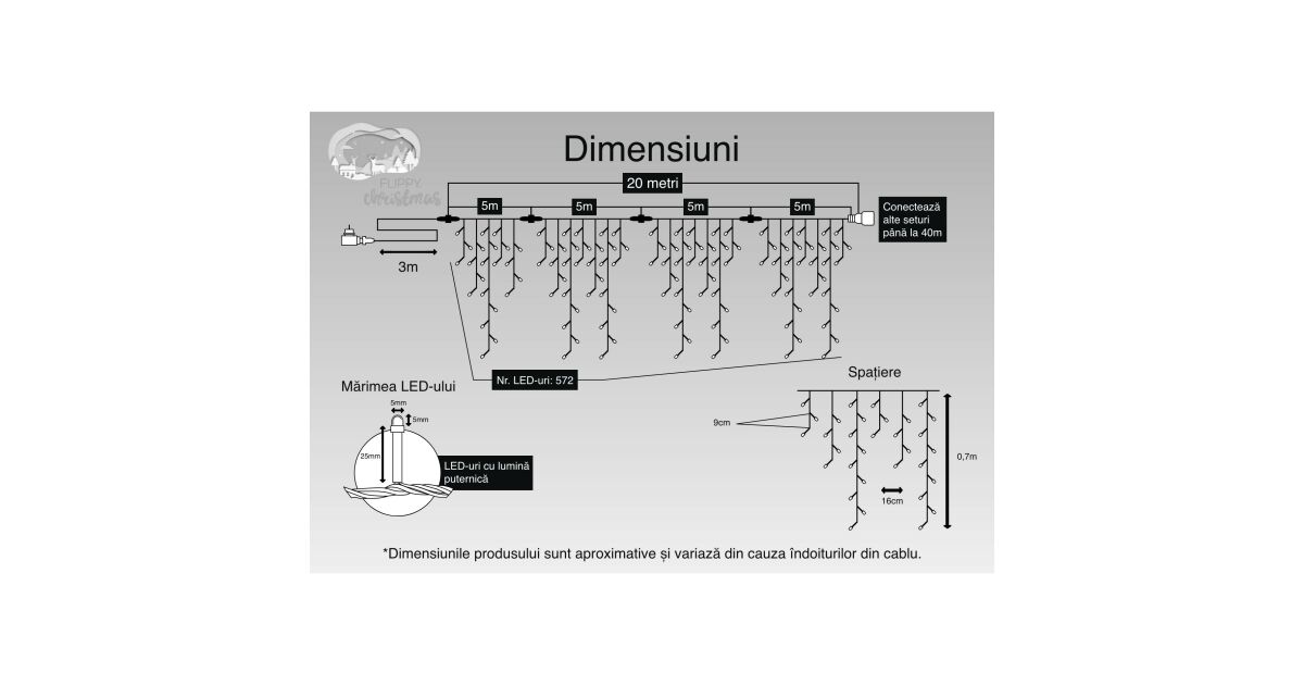 - 1 x Ghirlandă lumini picătură de 20 metri (572 LED-uri)