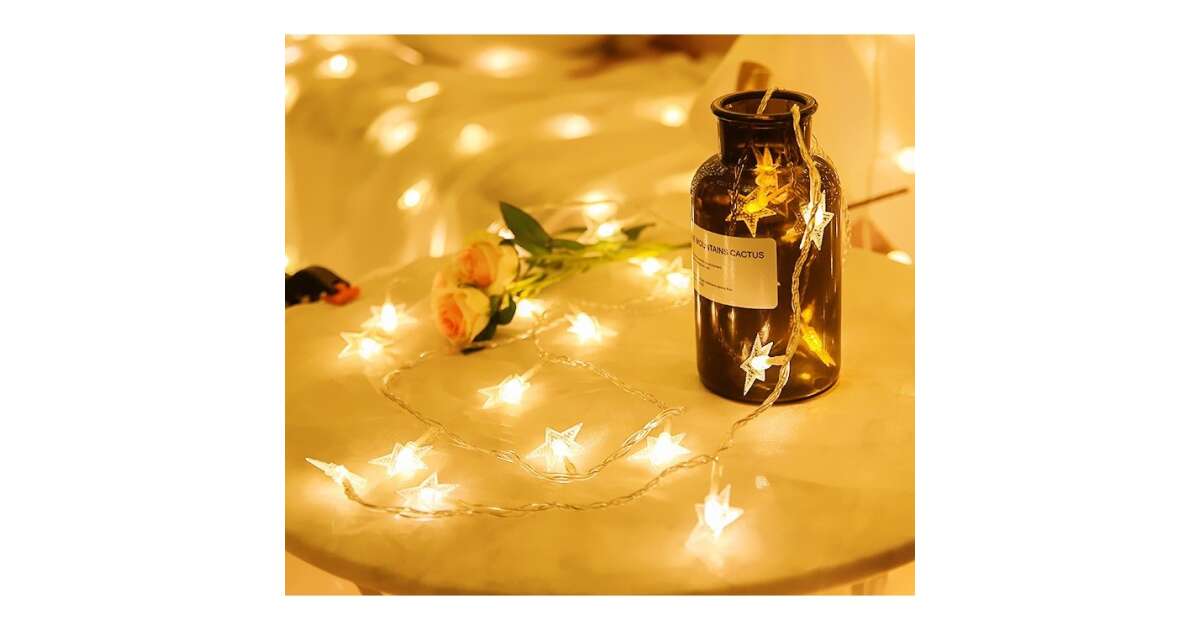 Ghirlandă Lumini Crăciun cu Steluțe - 3 metri, 20 LED - Lumină Alb Cald ✨