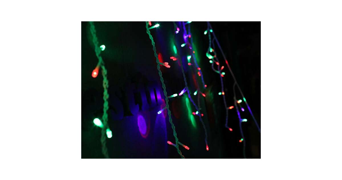 Instalatie Craciun, 35 m, 1001 Led-uri ,Franjuri, Rosu / Verde/ Albastru, Flash, Transformator, Interconectabila, Prelungitor 3 m inclus, Fir Alb, KipHome Descriere