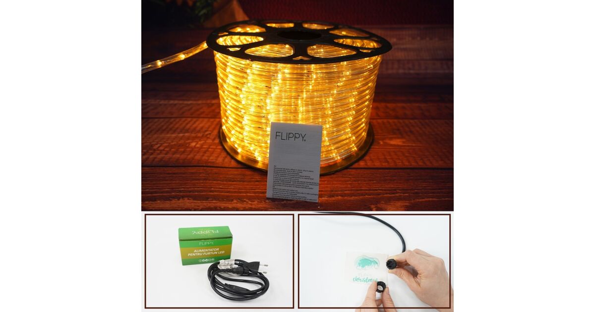 Instalatie Craciun, 40 m, 960 Led-uri, Furtun Luminos, Alb cald, Transformator, Sectionabila, 220 V, KipHome Descriere