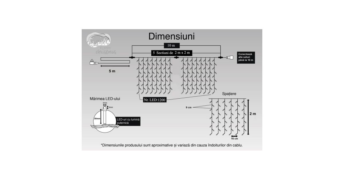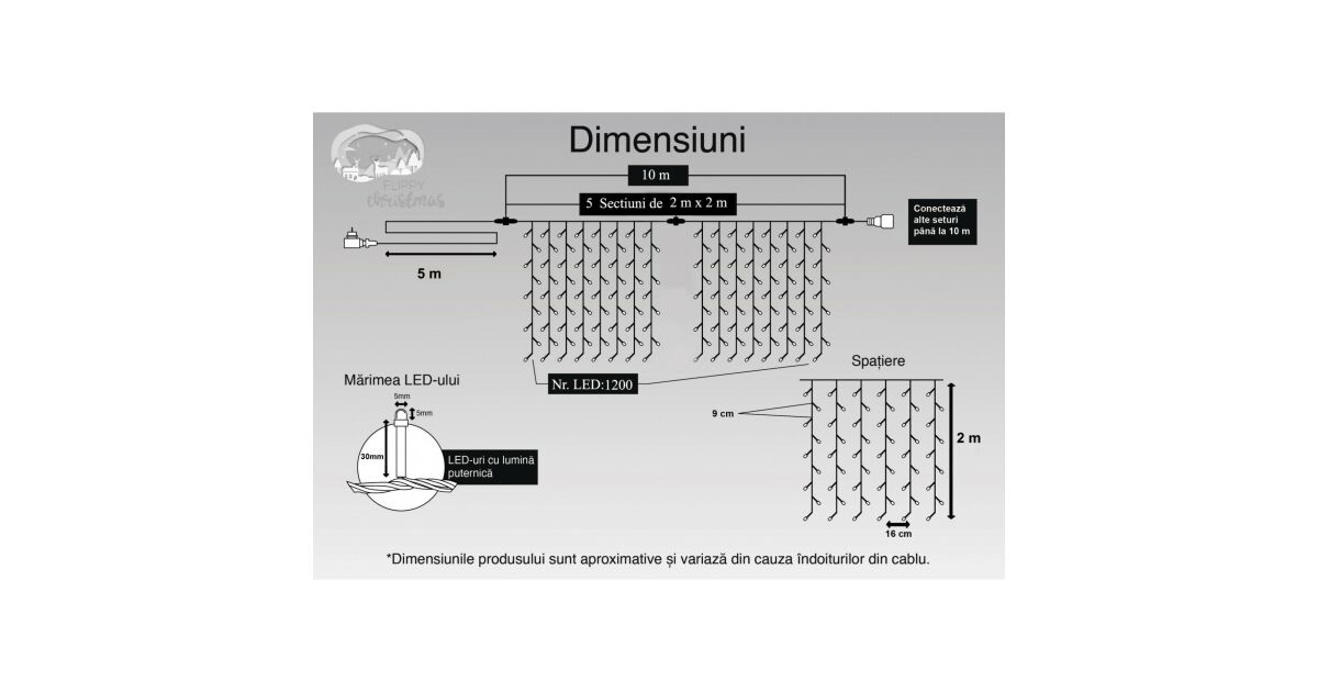 - 🔗 Conectabile: Poți conecta mai multe șiruri pentru a ilumina o suprafață mai mare