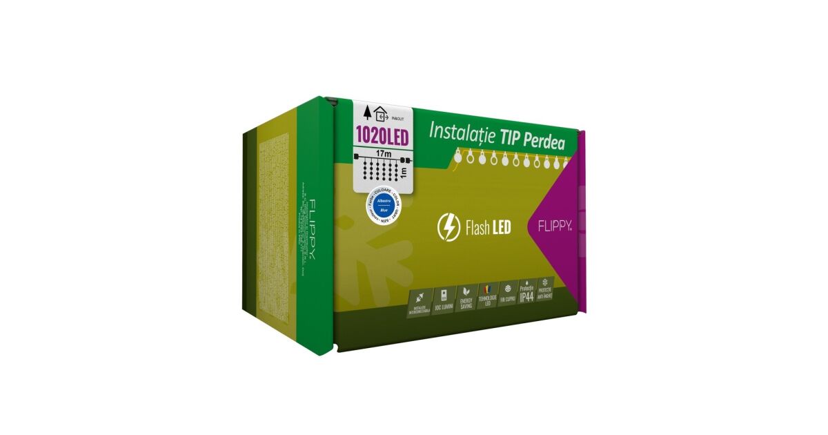 Creează o atmosferă uimitoare în casa sau grădina ta cu această superbă cortină lumini LED Flippy! Cu 1020 LED-uri albastre și o lungime de 17 metri, garantat vei fi impresionat de spectacolul de lumini. Ideală pentru Crăciun, ziua de naștere, orice sărbătoare, dar și pentru a crea o atmosferă plăcută în orice zi.