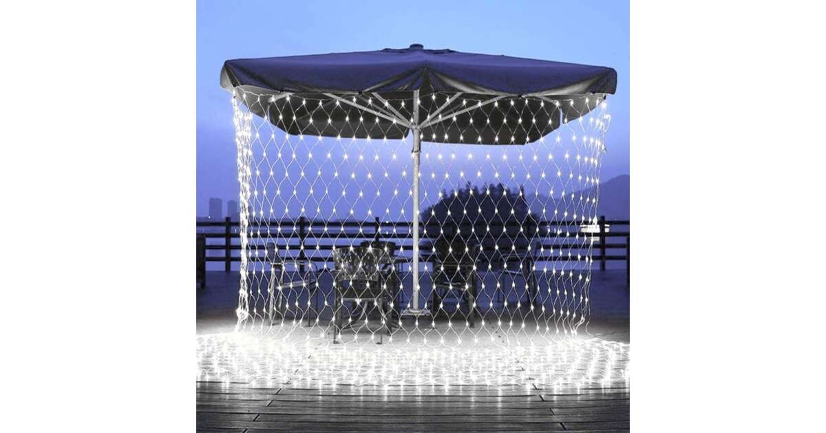 Instalatie Craciun, Tip Plasa, IP 44, 15 x 1 m, 720 LED-uri, Alb rece, 8 jocuri de lumini, Transformator cu telecomanda, Interconectabila, Prelungitor 3 m inclus, Fir transparent, KipHome