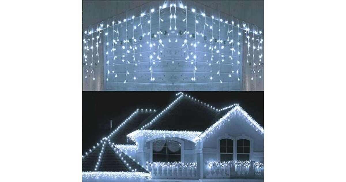 Ghirlandă luminițe Crăciun: 143 LED-uri albastre, 5 metri, 8 moduri de iluminare ✨