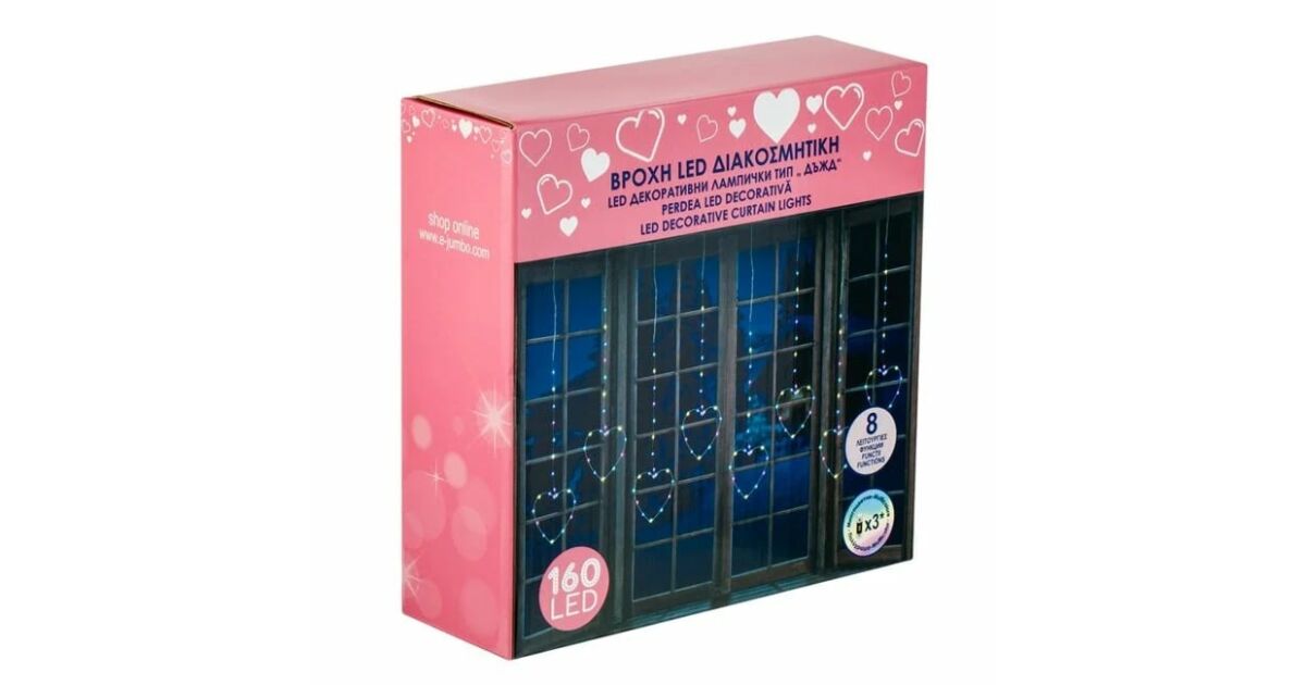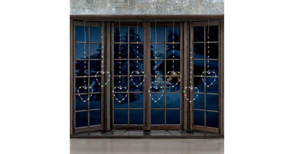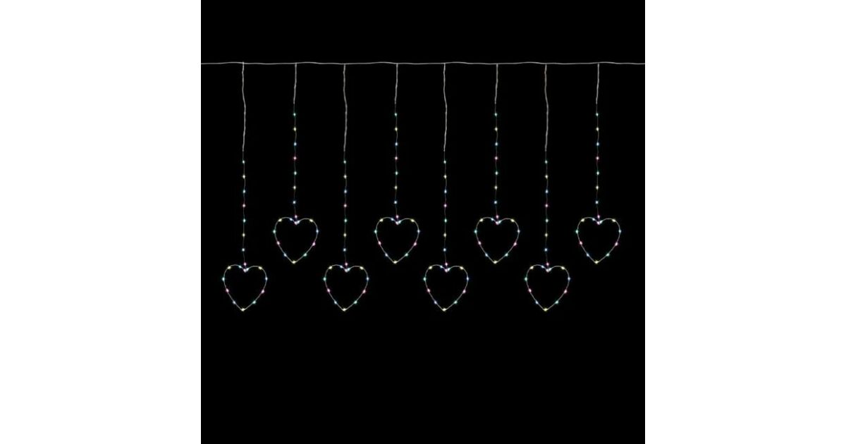 -Instalatie de lumini, perdea cu inimi cu 160 becuri led, 8 programe, dimensiuni 210x90cm, multicolor Descriere