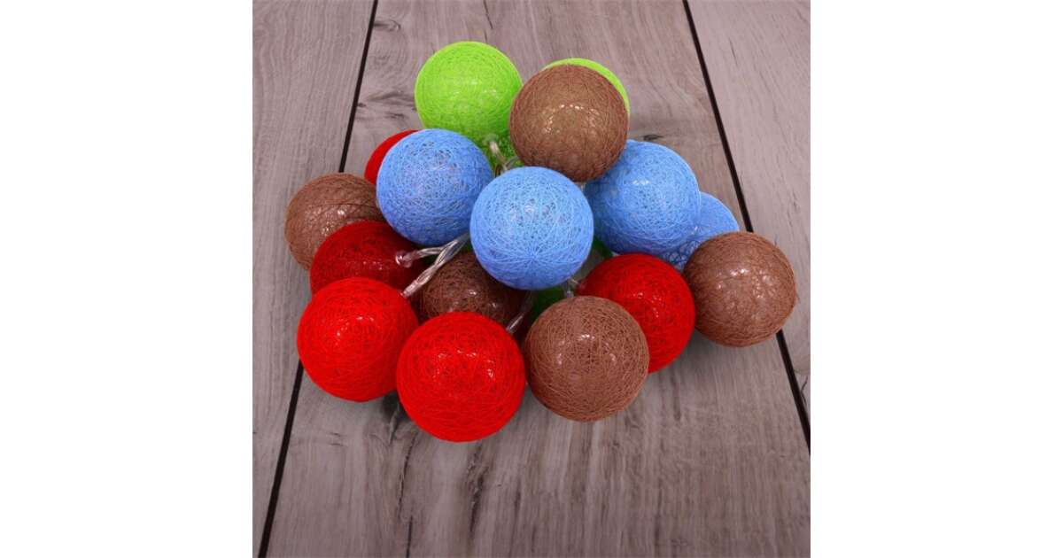 Ghirlandă LED cu globuri de bumbac - 20 buc - 3m - Colorată