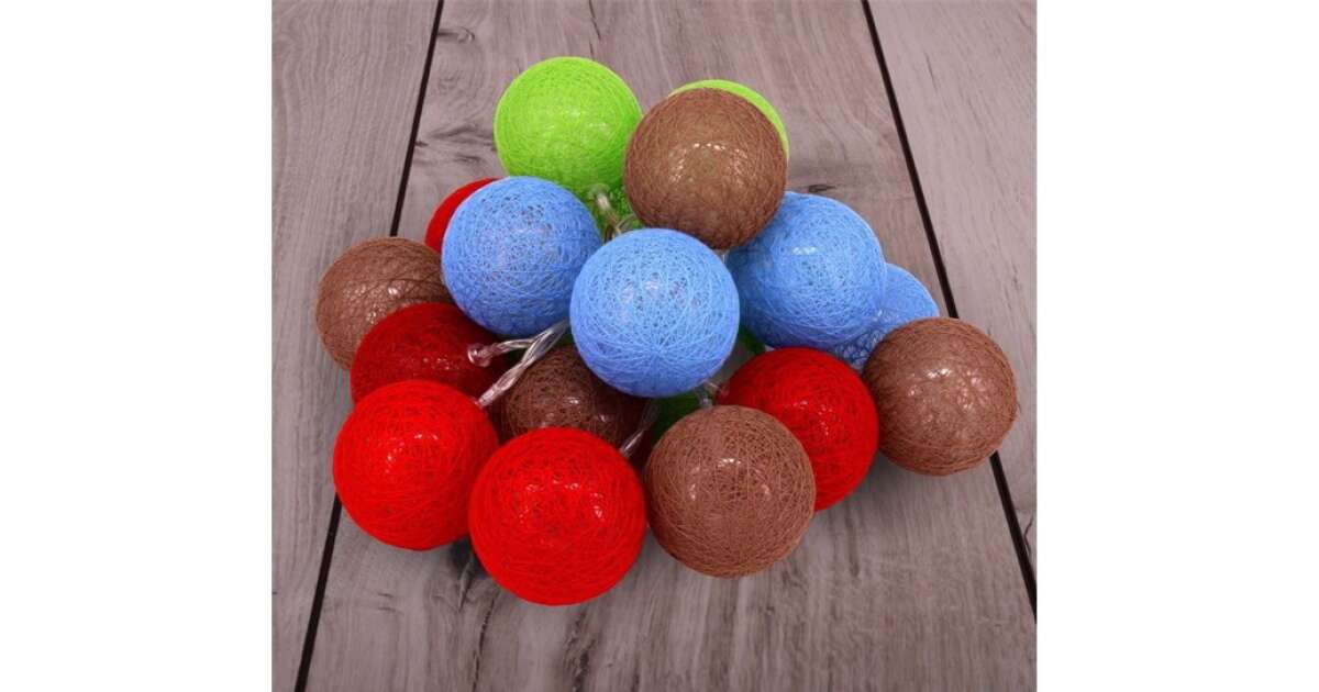 - 20 de globuri colorate de bumbac de 6 cm (maro, roșu, albastru, verde)