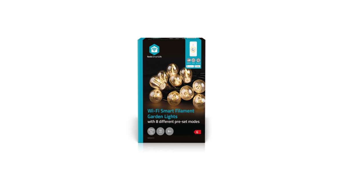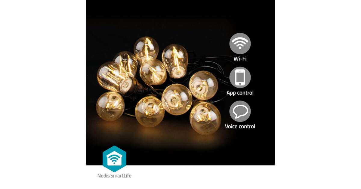 Lumini decorative SmartLife | Lumini de petrecere cu LED-uri | Wi-Fi | Alb cald | 10 buc. LED | 9,00 m | Android™ | Diametrul becului: 45 mm Descriere