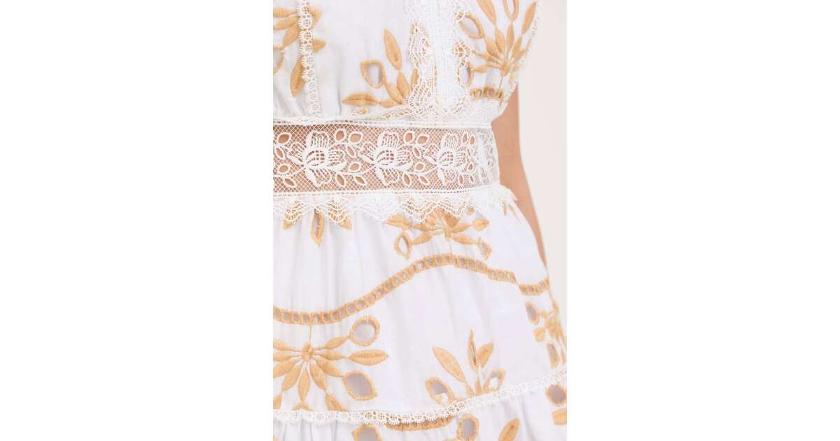 Rochie Mini Guess Nadia cu Decolteu în V și Broderie pentru Femei - Albă, Mărimea S ⚪️🌼