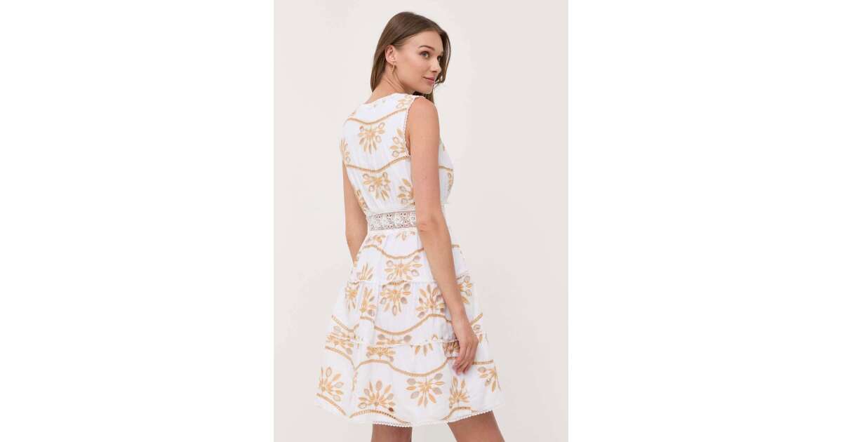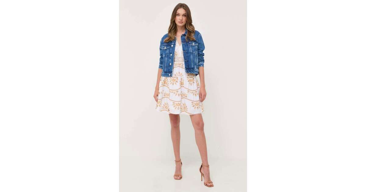 Această rochie mini Guess Nadia este alegerea perfectă pentru zilele de vară! Este confecționată dintr-un material confortabil și respirabil din bumbac, decorată cu broderii superbe. Decolteul în V oferă un aspect elegant, în timp ce fusta cu volane creează un efect vesel și jucăuș. Este ideală pentru ținutele de zi cu zi, dar și pentru un eveniment de seară.