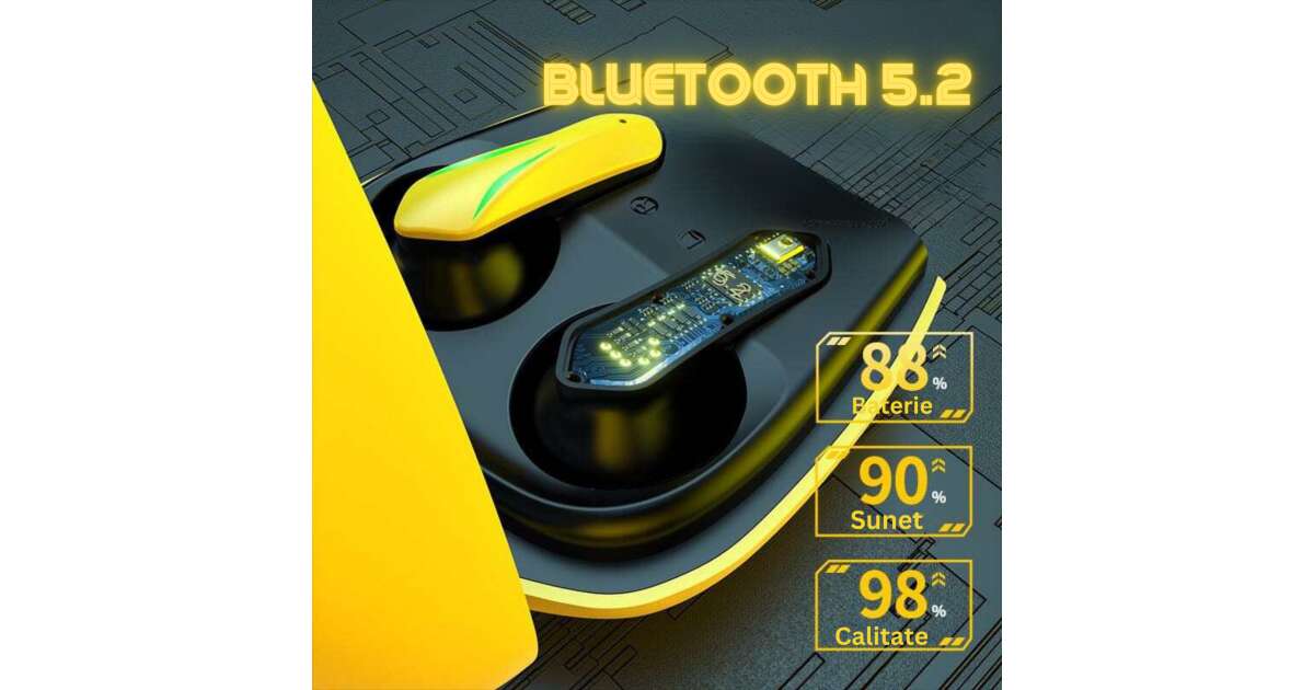 - ⚡ Bluetooth 5.2: Conectivitate rapidă și stabilă, cu consum redus de energie.