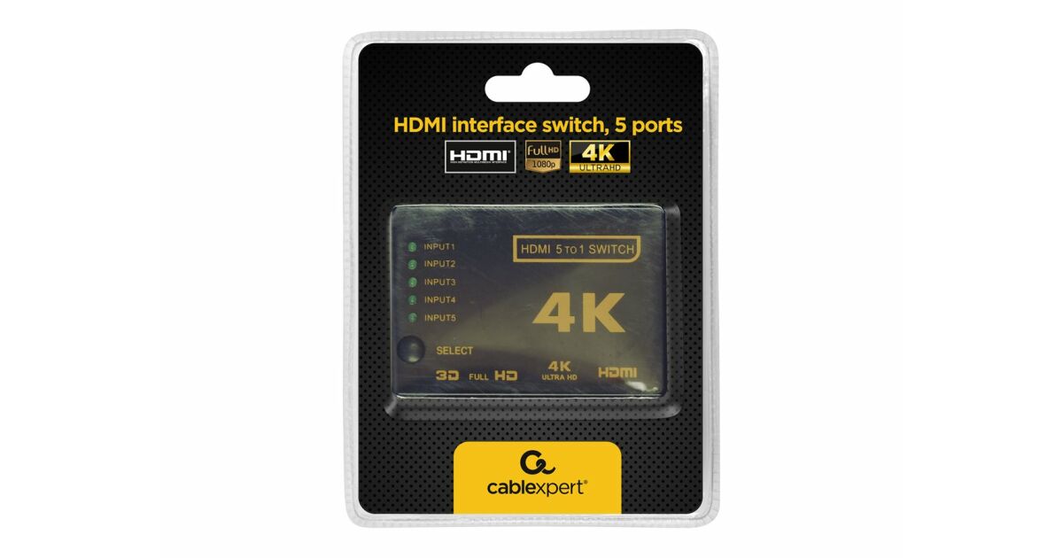 Switch HDMI cu 5 Porturi și Telecomandă Gembird: Conectare Simplă, Calitate Perfectă a Imaginii 📺