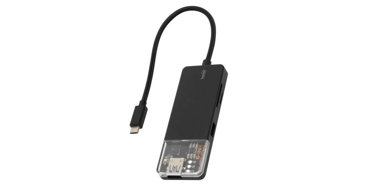 -Acasă USBHUB6 stație de andocare, 4K HDMI, mouse, tastatură, TF/microSD, SD, stocare USB, hard disk, ~100 W PD, plug & play, feedback LED Descriere
