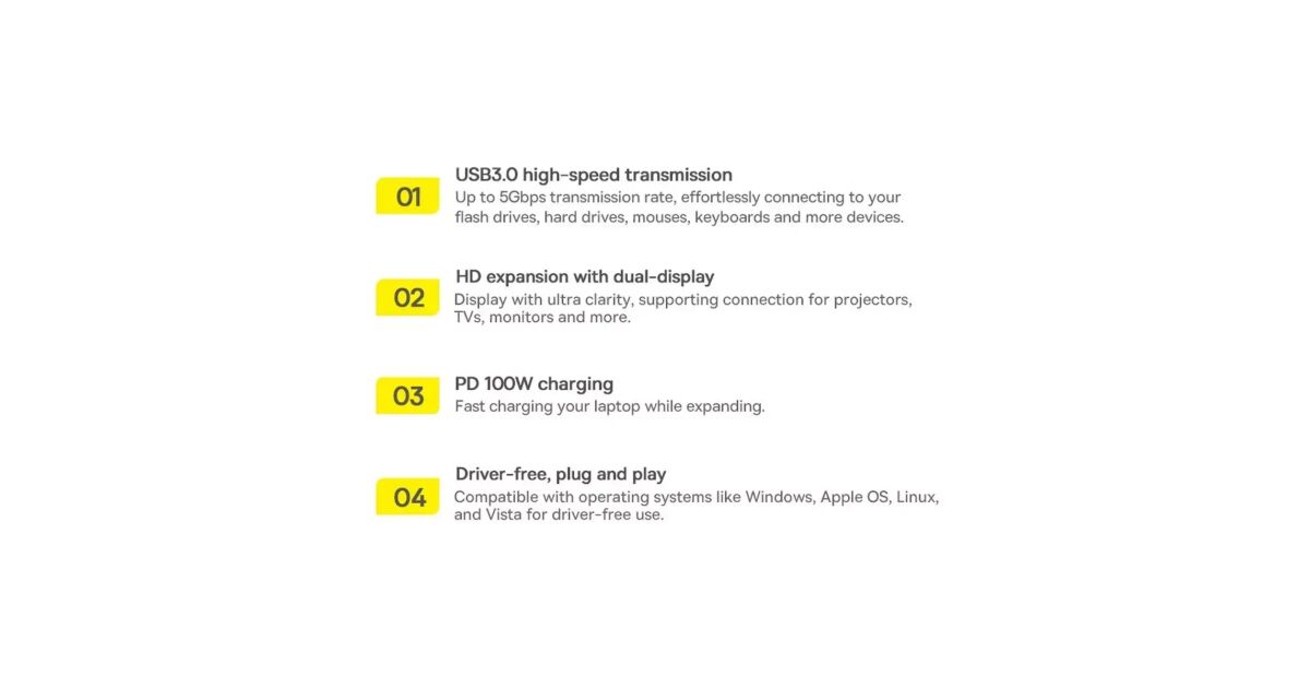 Acest dock USB-C compact și elegant Baseus Metal Gleam 7 în 1 oferă o soluție completă pentru extinderea opțiunilor de conectivitate ale laptopului tău. Conectează-l simplu la portul USB-C și vei avea acces la:
