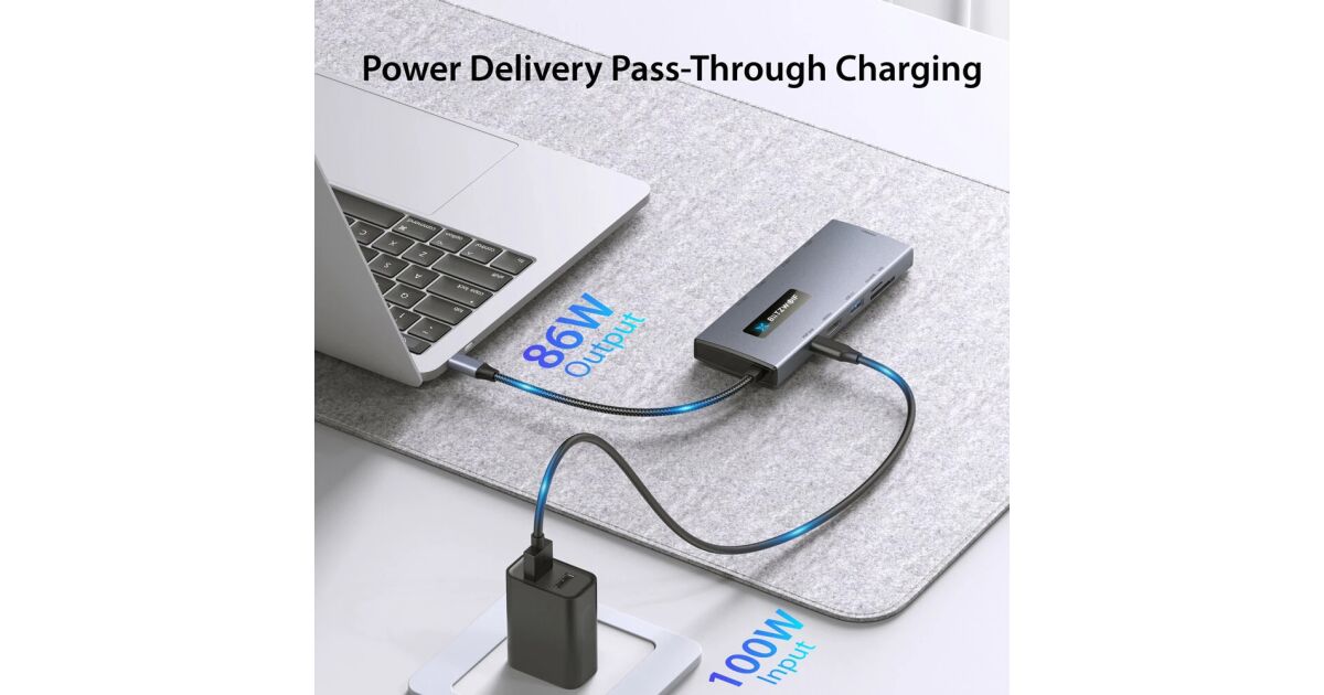 - Încărcare rapidă: Cu încărcarea PD de 100W, laptopul tău va rămâne mereu încărcat.