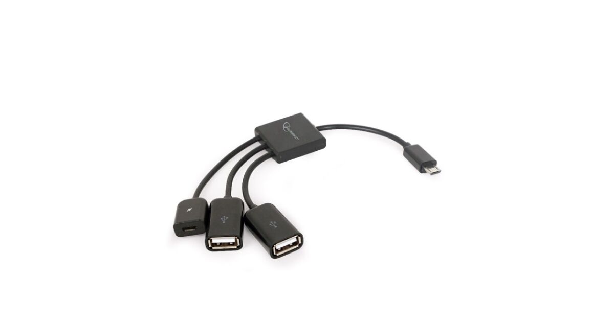 Cablu Adaptor OTG Gembird, Micro-USB 2.0 (T) la Micro-USB 2.0 (M) + USB 2.0 (M) x 2, 13cm, Negru, UHB-OTG-02 (UHB-OTG-02) (UHB-OTG-02) cumpărați de la:
