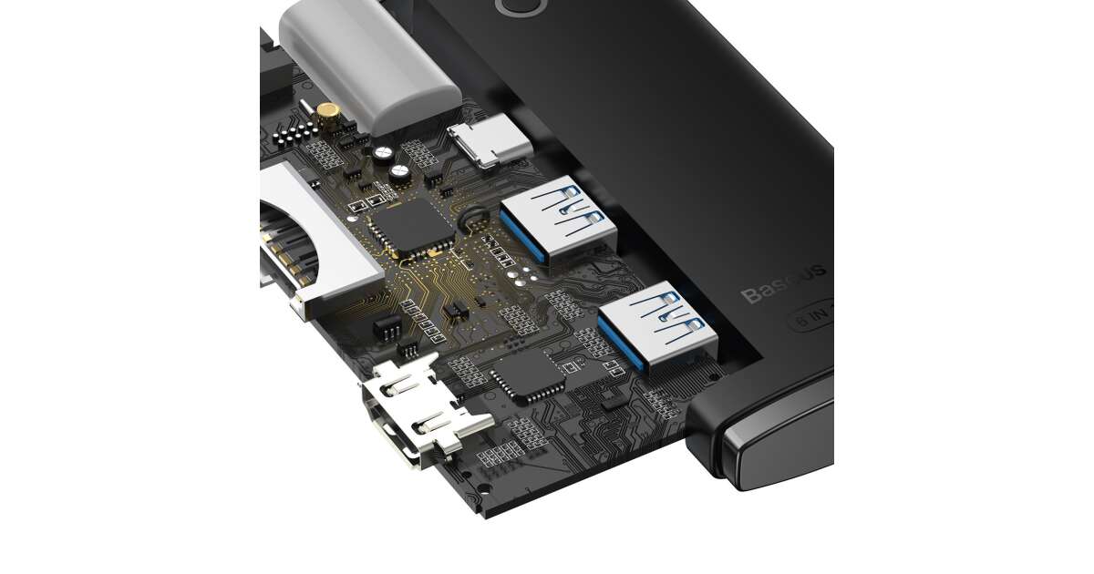 Acest hub compact USB-C Baseus Lite este soluția perfectă dacă ai nevoie de mai multe porturi pentru laptopul tău sau alte dispozitive USB-C. Poți conecta cu ușurință mai multe dispozitive simultan, fără a face compromisuri.