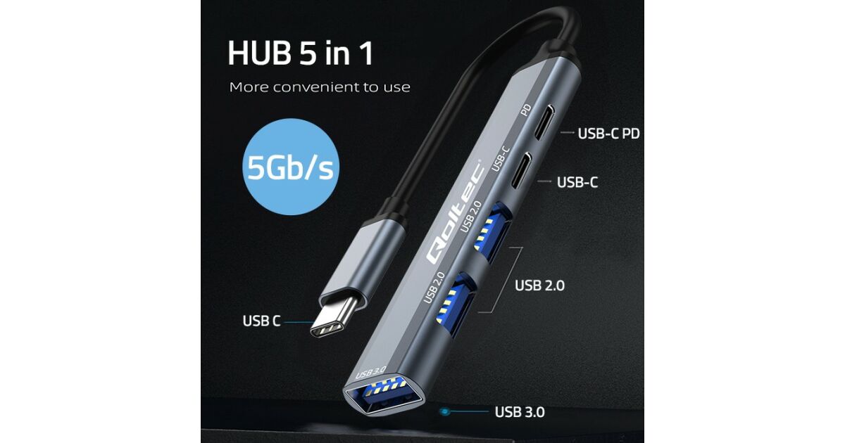 Qoltec Hub Adaptor USB-C 3.1 5in1 | USB-C PD| USB-C | 2x USB 2.0 | USB 3.0 opinii