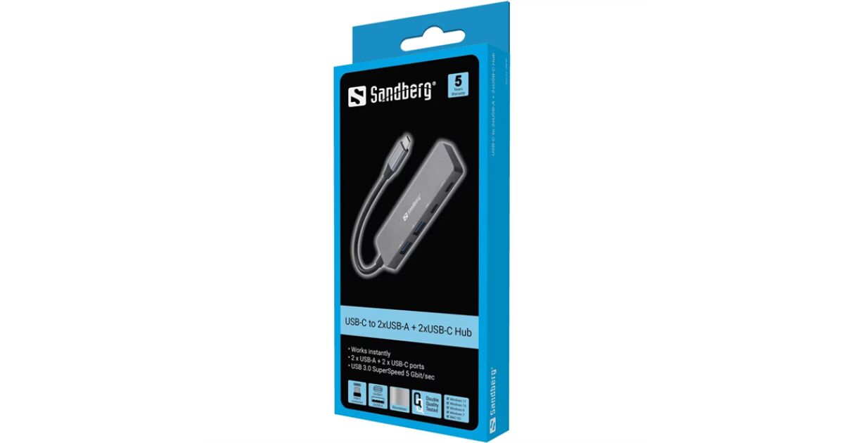 Sandberg USB-C la 2xUSB-A și 2xUSB-C Hub Silver 136-50 Descriere