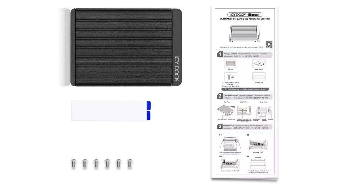 Transformă-ți cu ușurință SSD-ul M.2 NVMe PCIe într-un SSD U.2 (SFF-8639) NVMe standard de 2,5" cu acest adaptor care nu necesită unelte! ICY DOCK EZConvert MB705M2P-B este soluția perfectă dacă folosești un sistem compatibil U.2 și vrei să profiți de unitățile tale M.2 rapide.