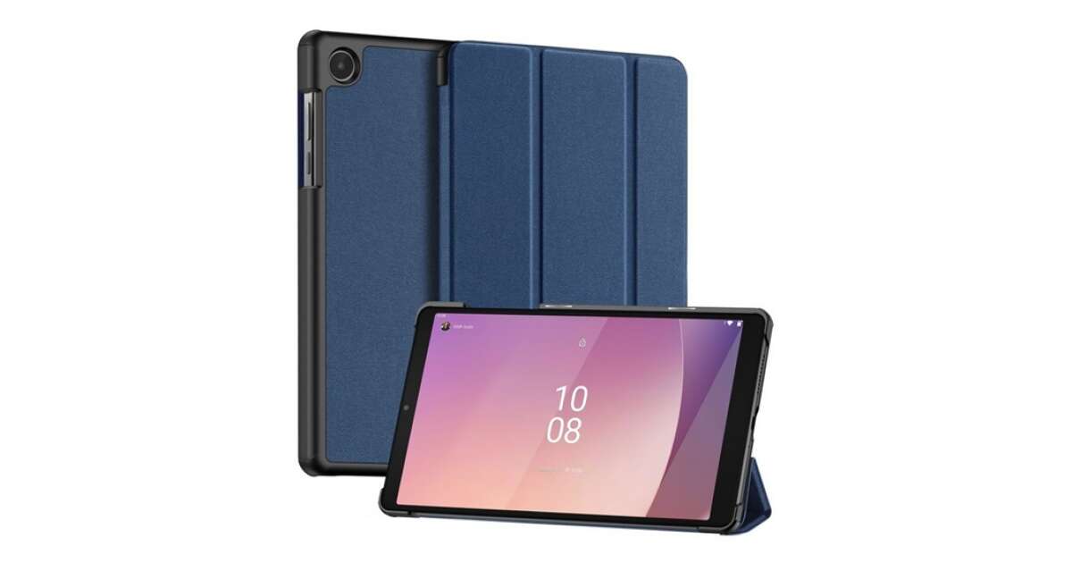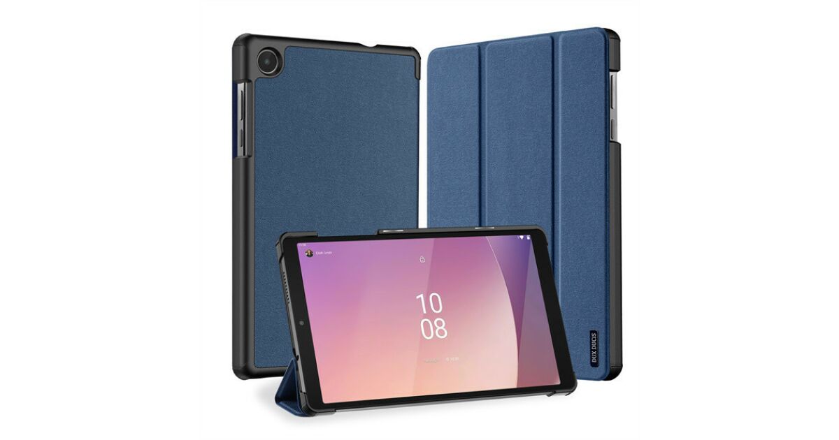 Husa tableta Dux ducis domo, in picioare, efect piele, clapa activa, deschidere laterala, trifold, suport de birou, model textil, albastru inchis, compatibil cu: Lenovo Tab M8 Gen4, TB300F, W Descriere