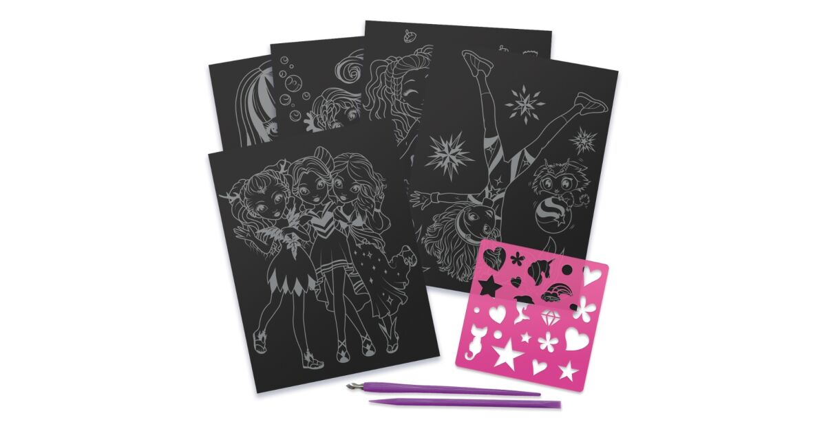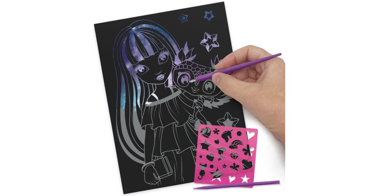 Set creativ Scratch & Sketch, planșe de răzuit, șabloane și unelte incluse, Nebulous Stars, Isadora, 8+ Descriere