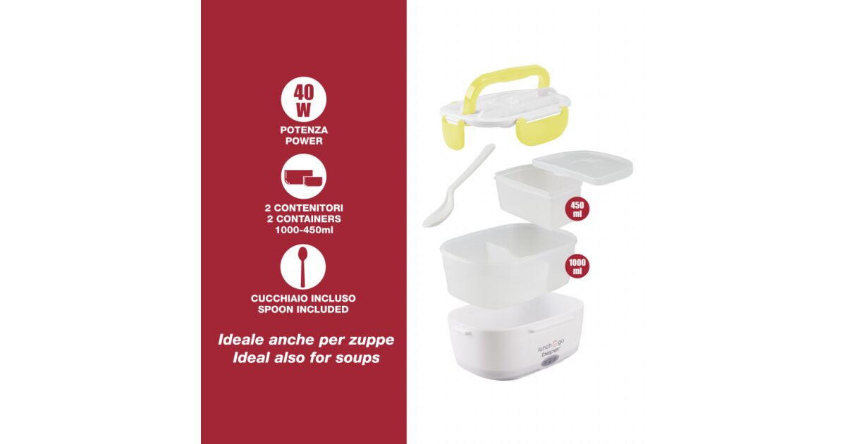 Cutie de prânz electrică Beper 90.920G, 40W, 1 l, Până la 60C, 2 compartimente detașabile, Indicator luminos, Alb/Galben Descriere