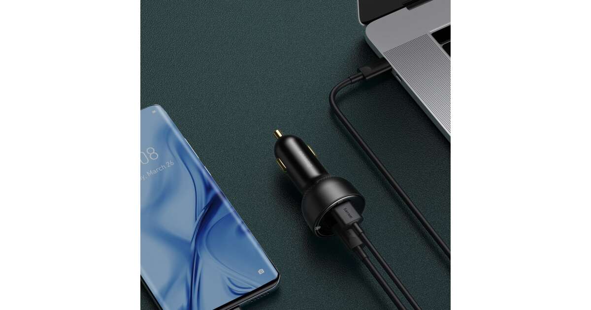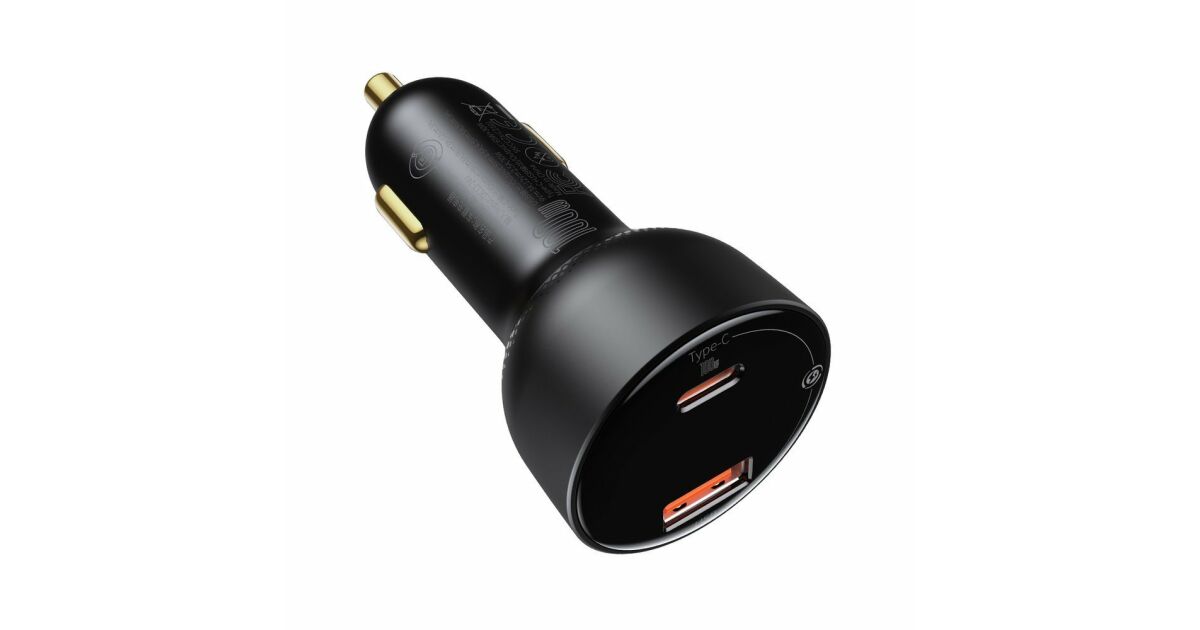 Acest încărcător auto Baseus Superme are două porturi (USB-C și USB), astfel încât poți încărca rapid două dispozitive simultan. Cu puterea maximă de 100W, îți încarcă laptopul sau telefonul inteligent fulgerător de repede. Afișajul digital integrat arată în timp real tensiunea bateriei și puterea de ieșire.