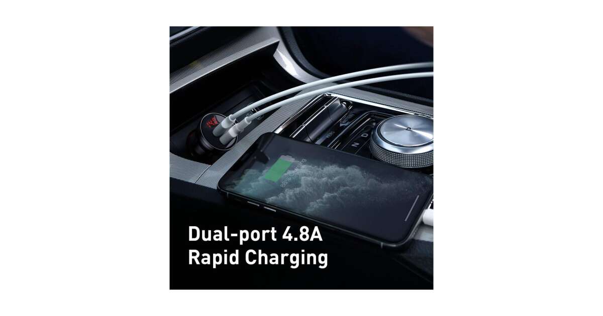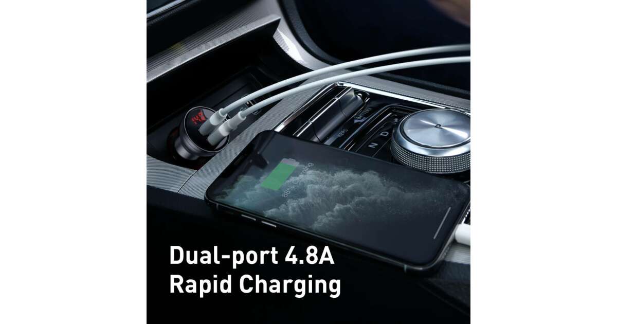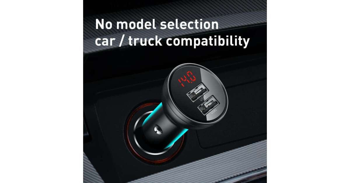 Acest încărcător auto Baseus e perfect dacă vrei să încarci rapid și eficient două dispozitive simultan. Cu dublu USB (2.4A/port) și 24W putere, îți încarci telefonul, tableta sau alte dispozitive USB fulgerător de repede.