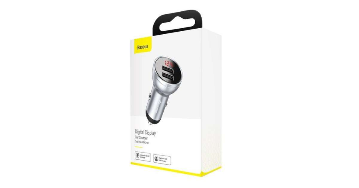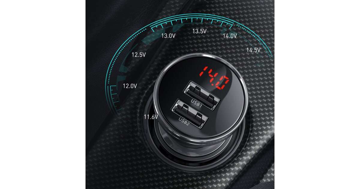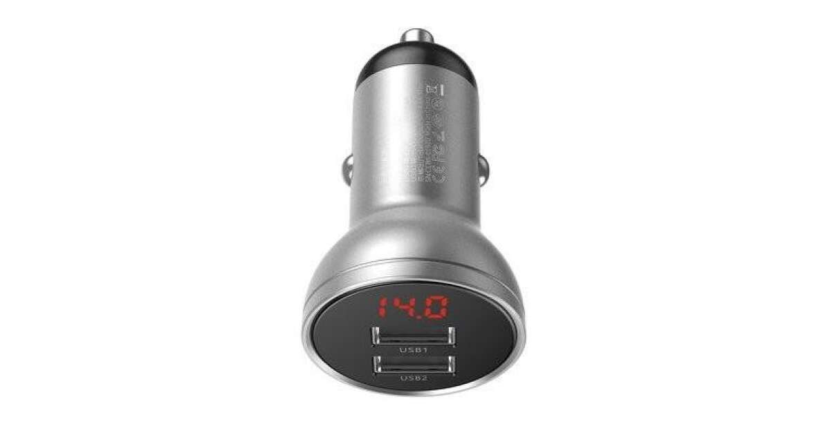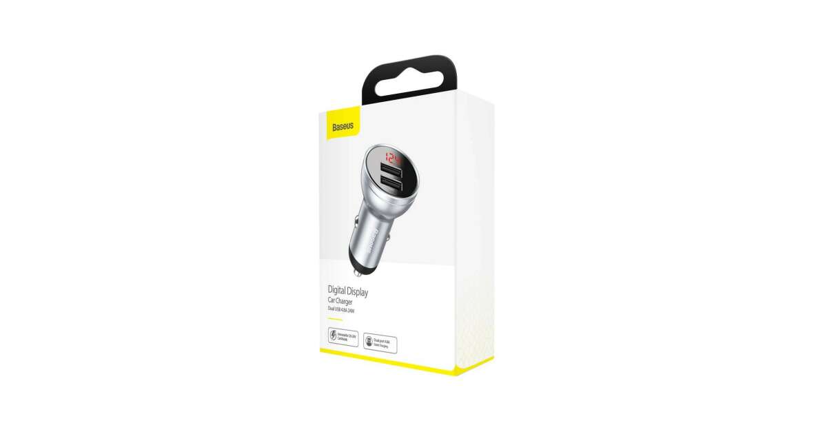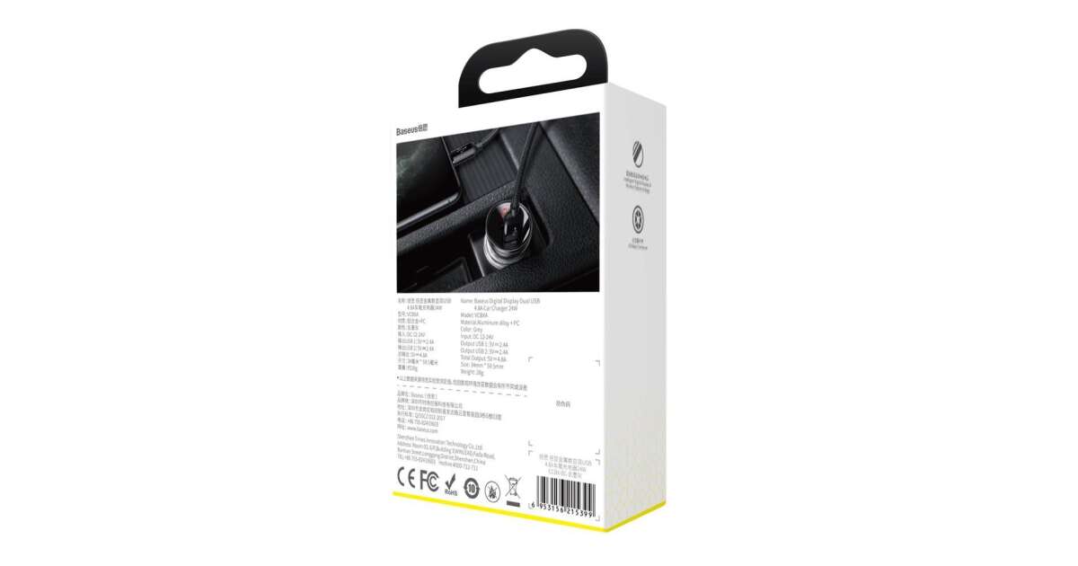 Incarcator auto, Baseus Digital Display, IMK-CCBX-0S, 2 porturi USB, Quick Charge, SCP, 24W, Afisaj tensiune, Argintiu Descriere