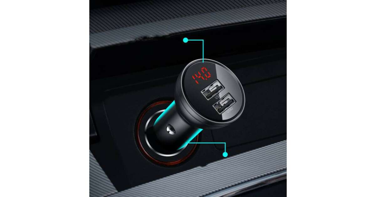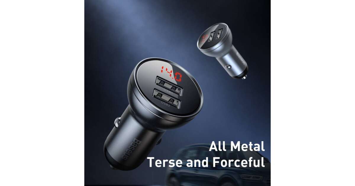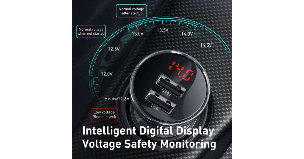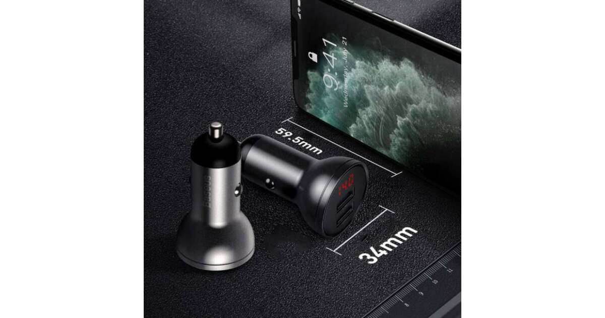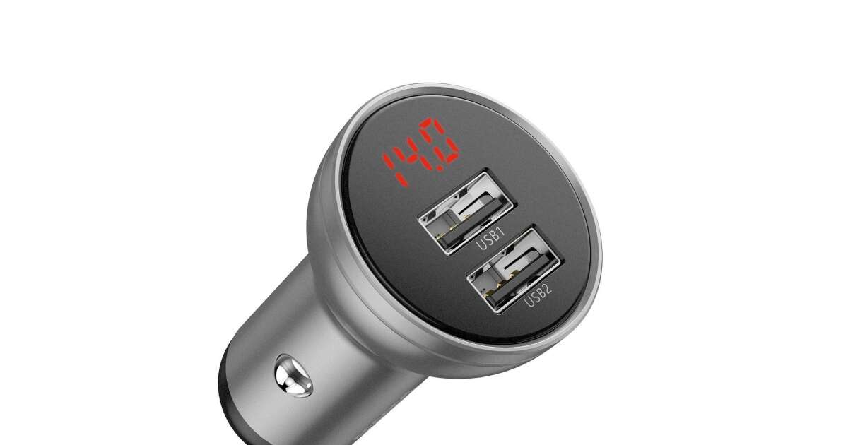 Incarcator auto, Baseus Digital Display, IMK-CCBX-0S, 2 porturi USB, Quick Charge, SCP, 24W, Afisaj tensiune, Argintiu Descriere
