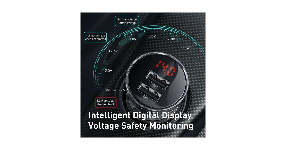 - Afișaj digital: Afișează tensiunea în timp real de la bateria mașinii.