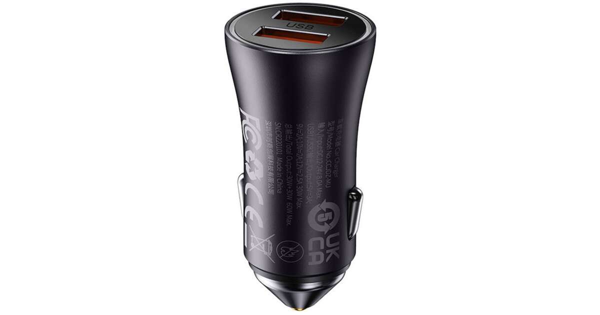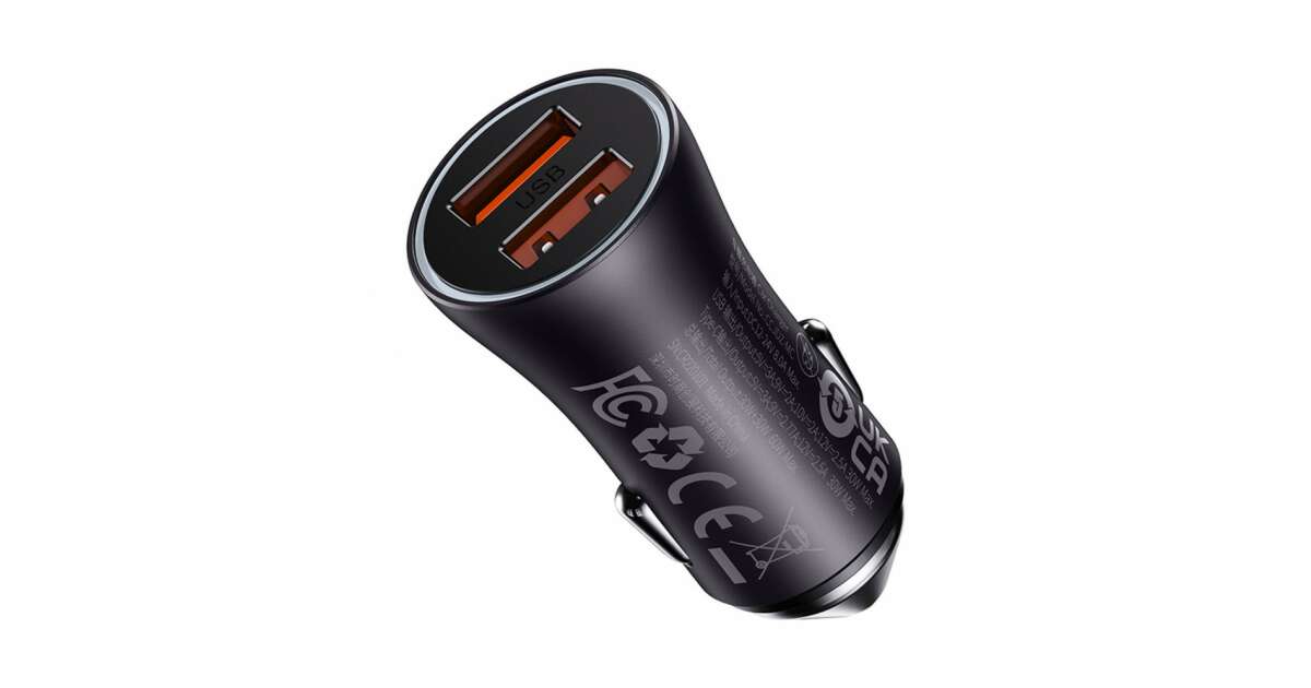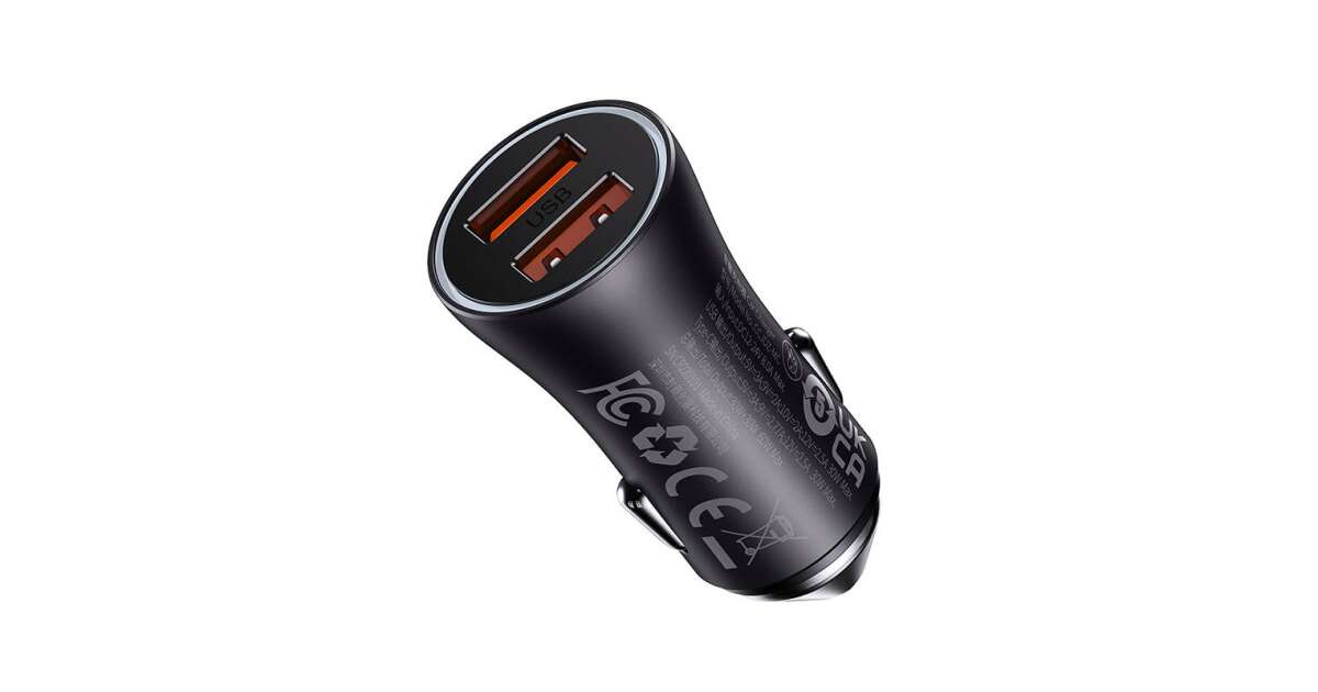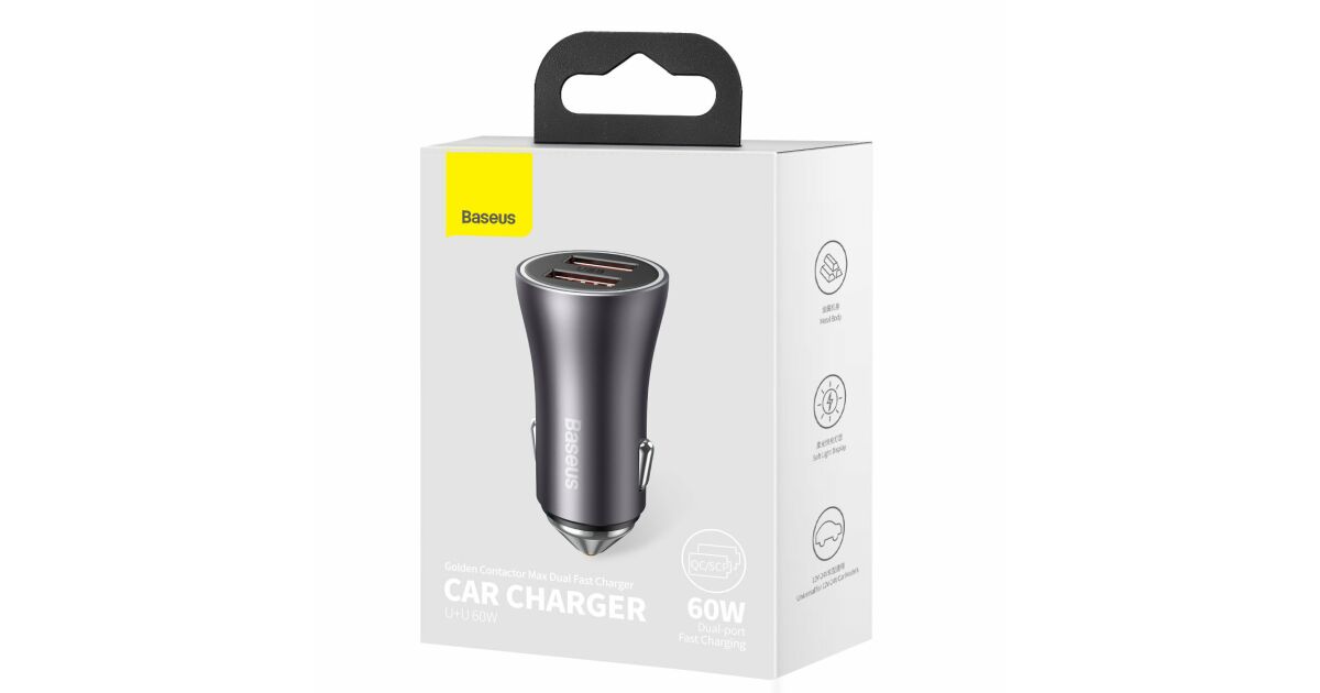 Incarcator auto Baseus Golden Contactor Max Dual, 2x USB-A, 60W Gri Descriere