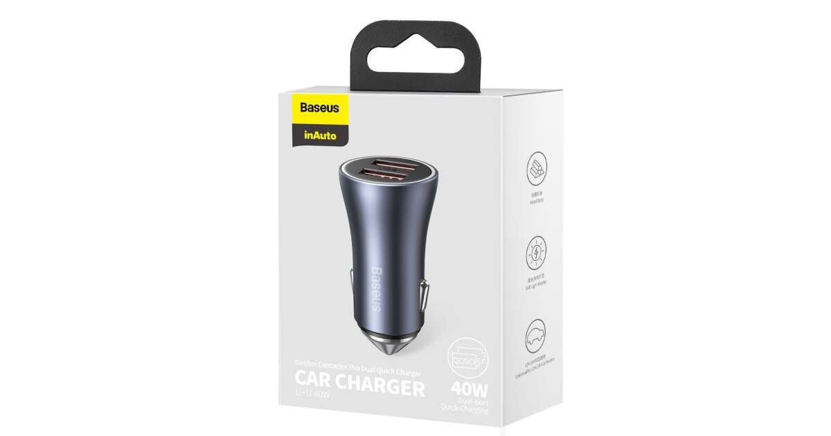 -Incarcator auto Baseus Golden Contactor Pro, 40W, 2xUSB, Quick Charge 4.0 Gri (CCJD-A0G) Descriere