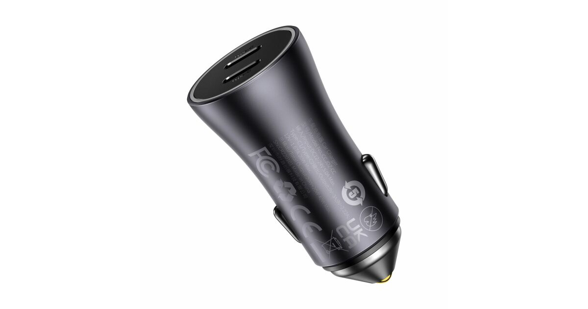 Acest încărcător auto este perfect dacă vrei să încarci rapid două dispozitive simultan în timpul călătoriei. Cu două porturi USB-C și putere de 40W, îți poți încărca telefonul, tableta sau alte dispozitive compatibile USB-C fulgerător de repede.