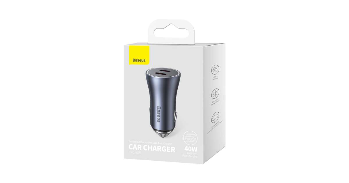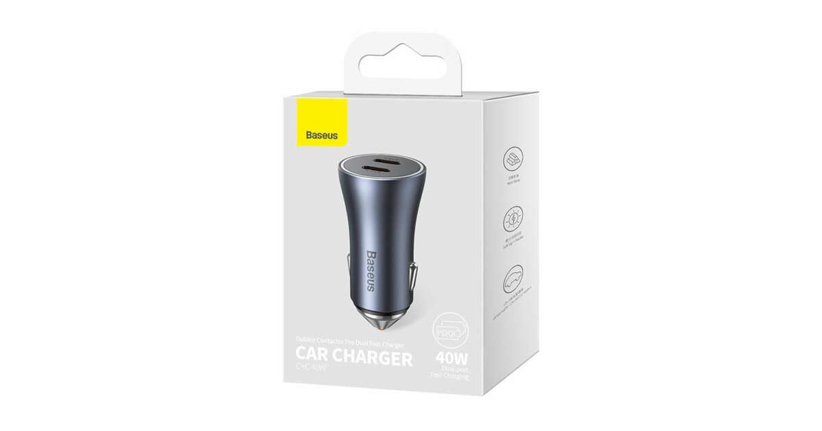 Incarcator auto Baseus Golden Contactor Max Dual, 2x USB-C, 40W Gri (CGJP000013) Descriere